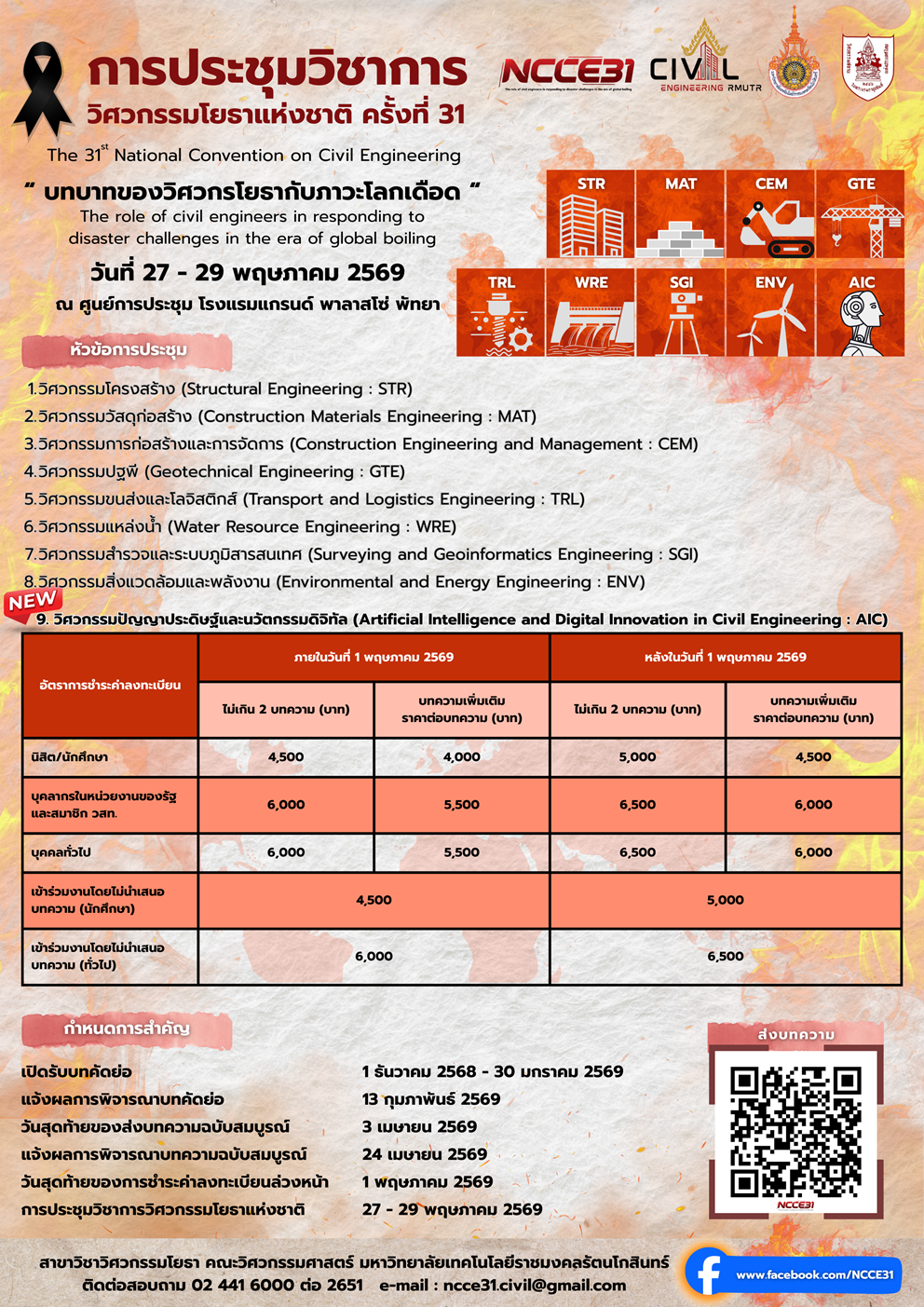 | การประชุมวิชาการวิศวกรรมโยธาแห่งชาติ | 27 - 29 พฤษภาคม 2569 |